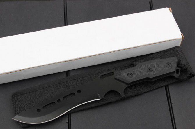 全 长:303mm 刃 长:180mm 柄 长:125mm 刃 宽:39mm 刃 厚:3.0mm 刃 材: 5cr15mov 重 量:299g(含包装) 硬 度:56 HRC 表 面:氧化黑 柄 材:pvc 锁 型:定锁 其 他:配纸盒 尼龙套