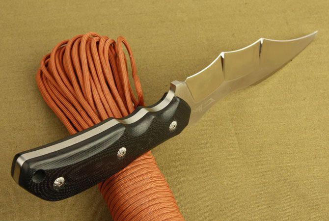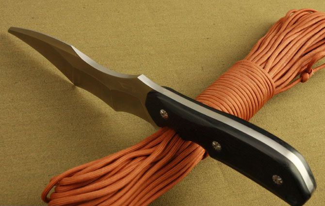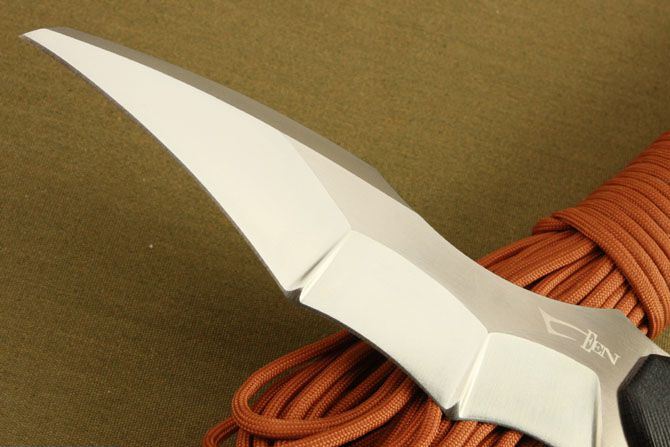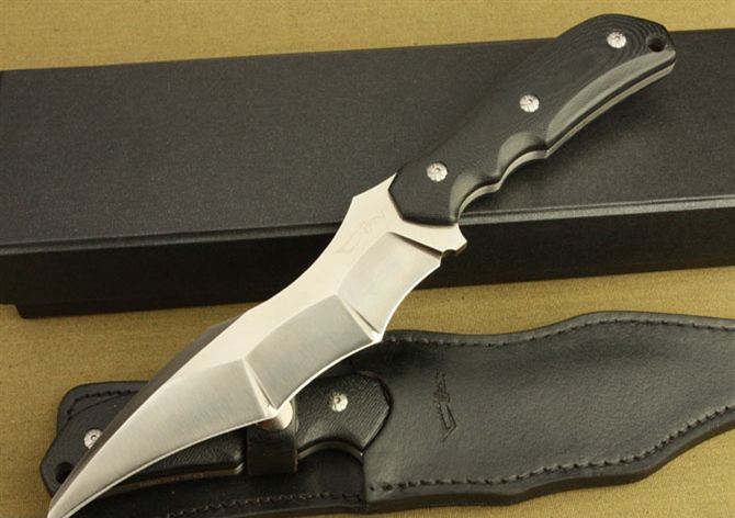翼龙无极蝙蝠(无盒) 全 长:300mm 刃 长:170mm 刃 宽:4.3mm 刃 厚:5.5mm 刃 材:进口D2钢 硬 度:60-62HRC{真空热处理) 重 量:500g(含皮套) 表 面: 砂光 柄 材:黑色G10 刀 鞘:皮套