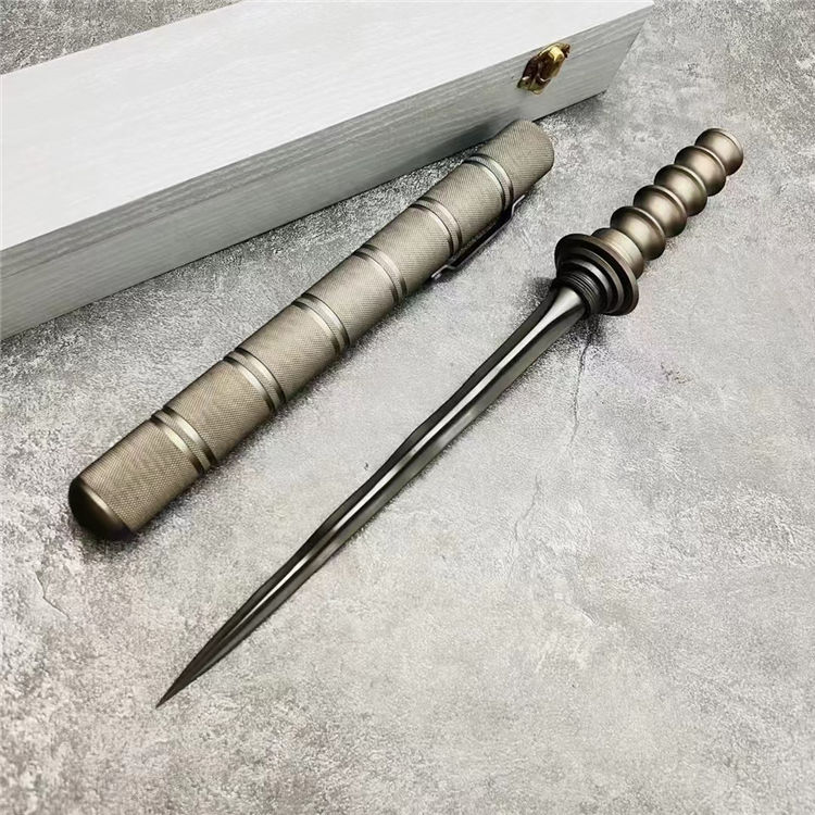 微技术Jagdkommando 特战钛蛇三棱(带圆托) 全 长:39cm 刃 长:26cm 柄 长:13cm 闭 合:41cm 刀 型:三棱刺 柄 材:铝合金 刀 鞘: 铝合金 净 重:700g 毛 重:1250g