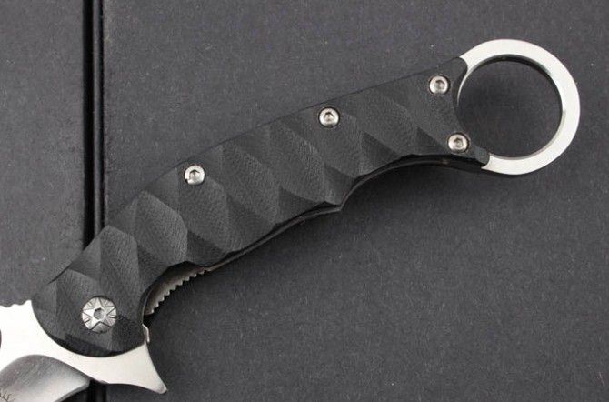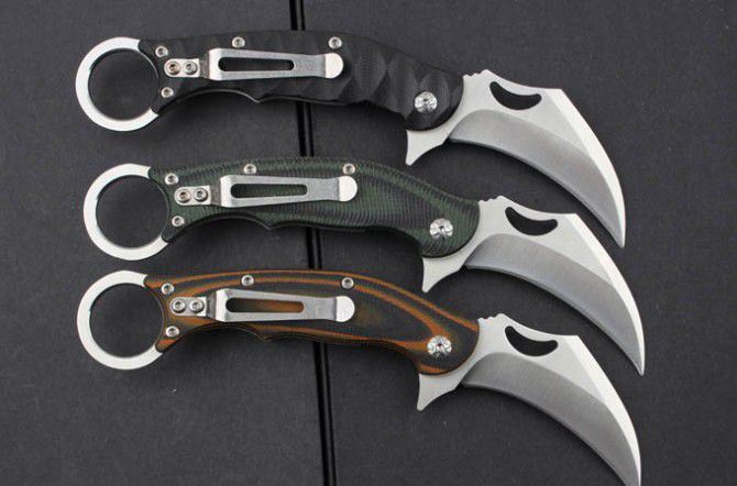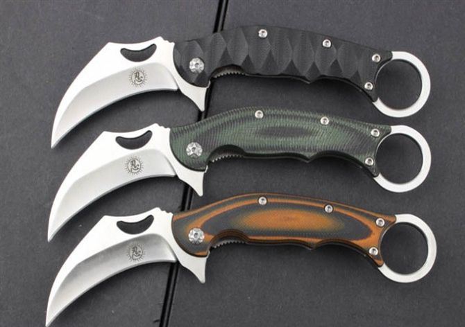 忍者神爪刀(黑黄柄、黑绿柄) 全 长:200mm 刃 长:75mm 柄 长:135mm 刃 宽:30mm 刃 厚:3.5mm 刃 材:5Cr13 重 量:139g(含包装) 硬 度:57HRC 表 面:砂光 柄 材:G10 锁 型:线锁 其 他:配纸盒