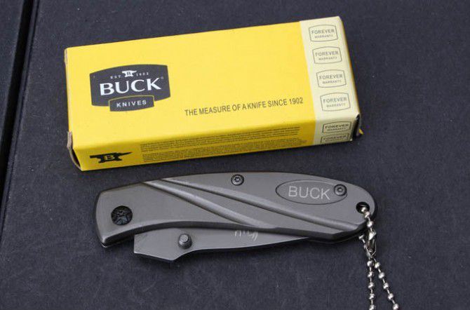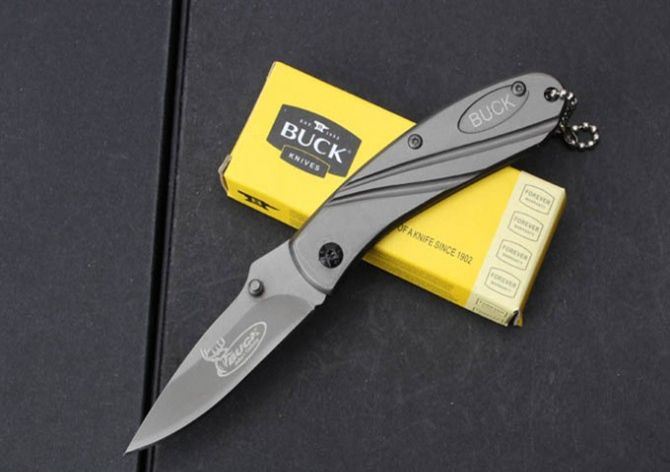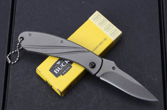 巴克X41小折刀 全 长:154mm 刃 长:60mm 柄 长:88mm 刃 宽:21mm 刃 厚:2.2mm 刃 材:440 重 量:70(含包装) 硬 度:57HRC 表 面:镀钛 柄 材:全钢 锁 型:无锁 其 他:配彩盒