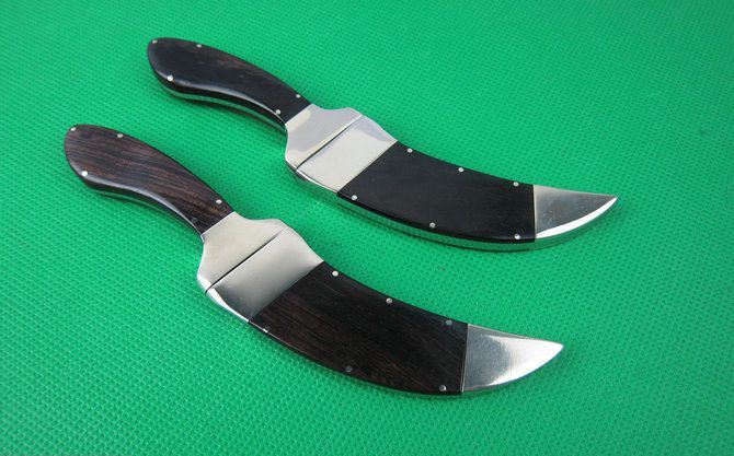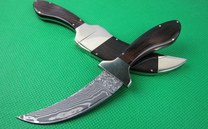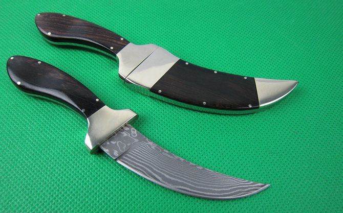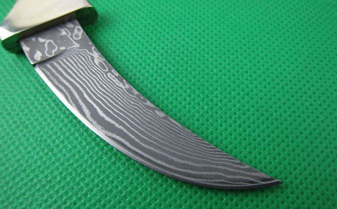 侠女大马士革配刀 全 长: 15.cm 刃 长: 7.3cm 刃 宽: 1.8cm 刃 厚: 2.2mm 柄 长: 10cm 刃 材: 进口大马士革钢 硬 度: 58HRC 总 重: 130克(含皮套) 表 面: 花纹原色 柄 材: 铜头+精镶天然名贵黑檀木材 其 他: 全铜+黑檀木刀套