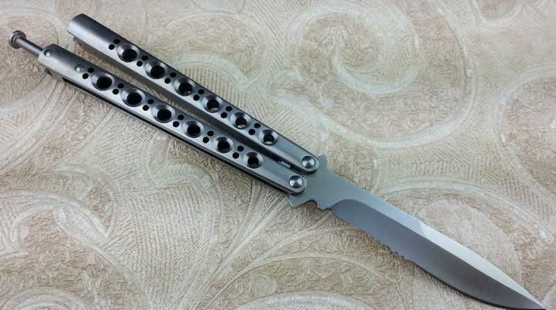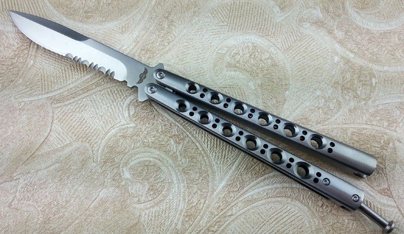 THE ONE BM42S(半齿) 全长:23.8CM 刃长:9.5CM 刃厚:0.3CM 刃材料:440C 刃硬度:58 柄材料:不锈钢压铸 柄硬度:40 重量:150克 刀鞘:刺绣高级尼龙套,可横竖挂皮带 THE ONE BM42s(半齿),由The one (唯一)精工打造,!一体柄型更坚固和耐摔,转动灵活,由THE ONE 出品,不可多得的精品甩刀!