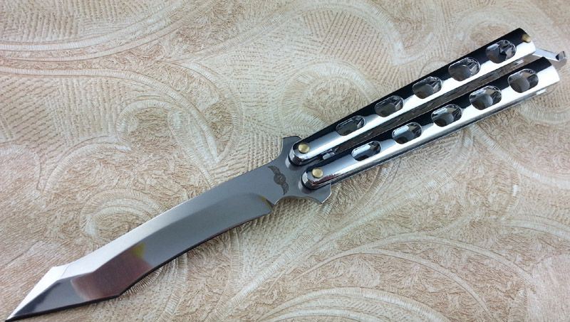 全长:22.5CM 刃长:10CM 刃厚:0.4CM 材料:3铬13不锈钢 硬度:56 柄材料:合金柄 重量:150克 the one银鹰甩刀,前突出特色尖刃,一体压铸合金柄,铜铆免维护型,坚固耐用,甩动非常顺畅!
