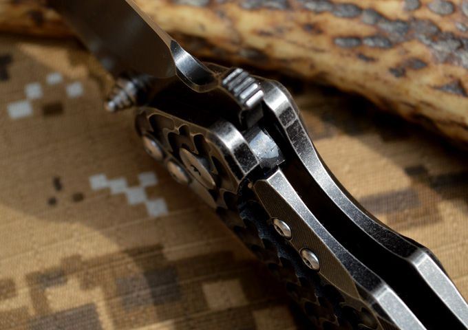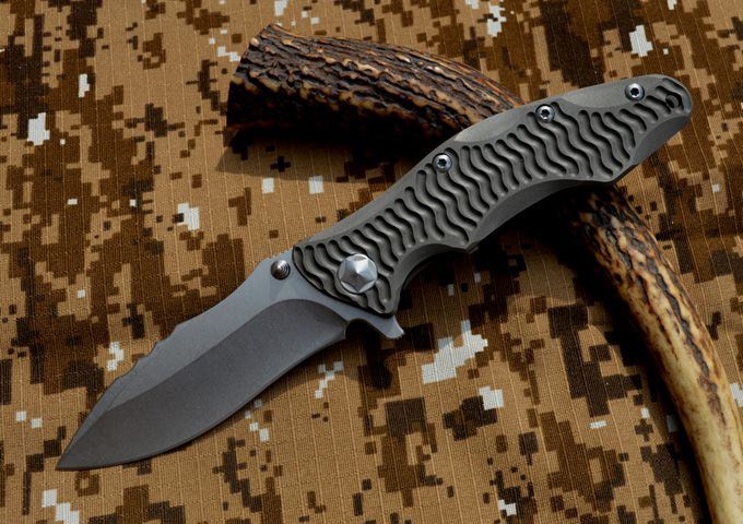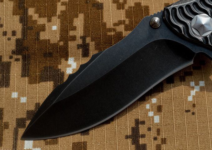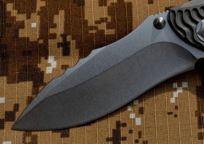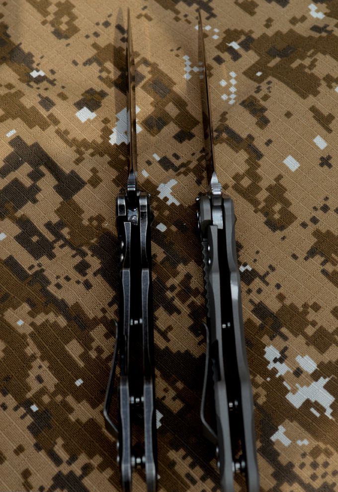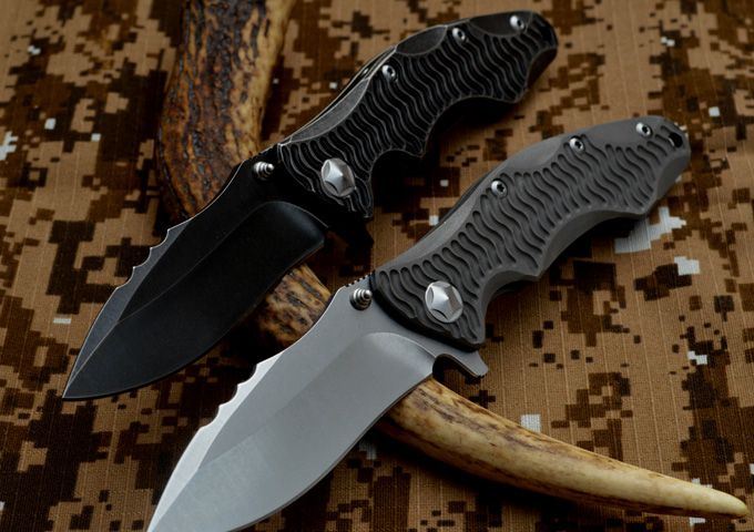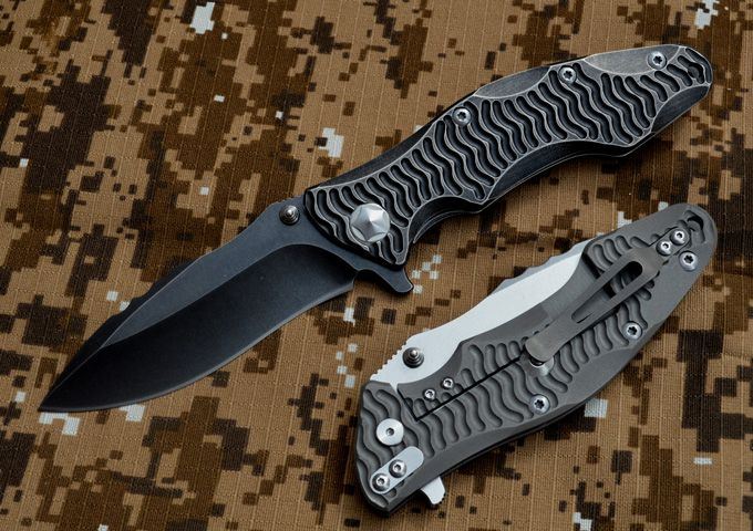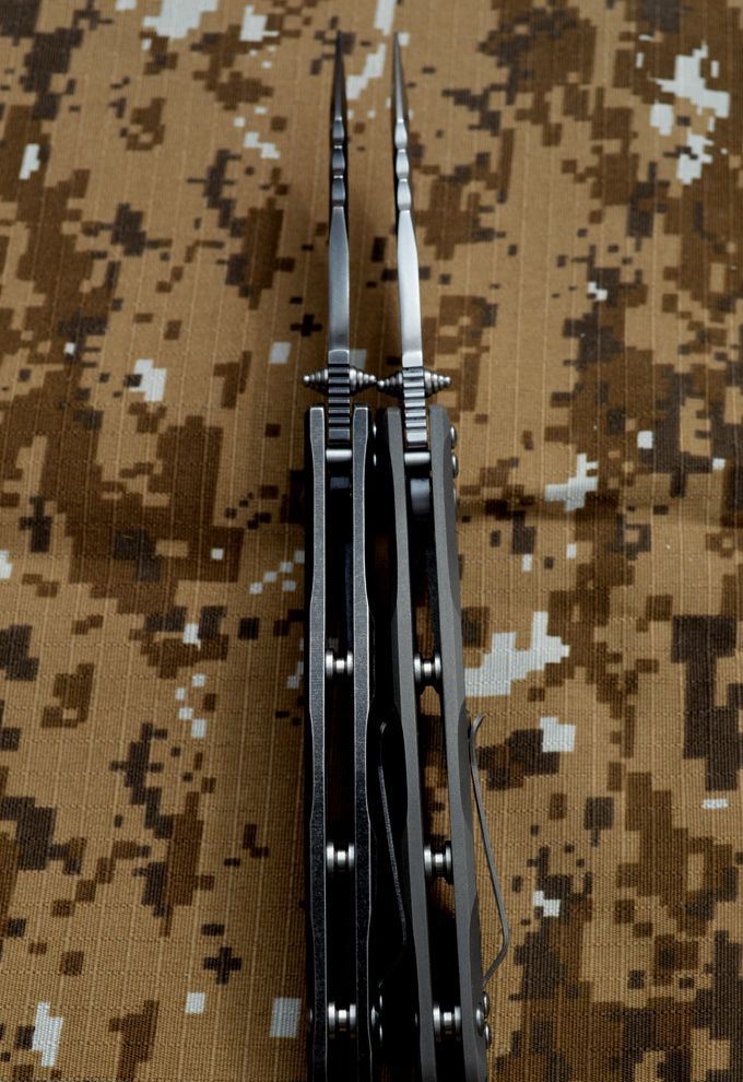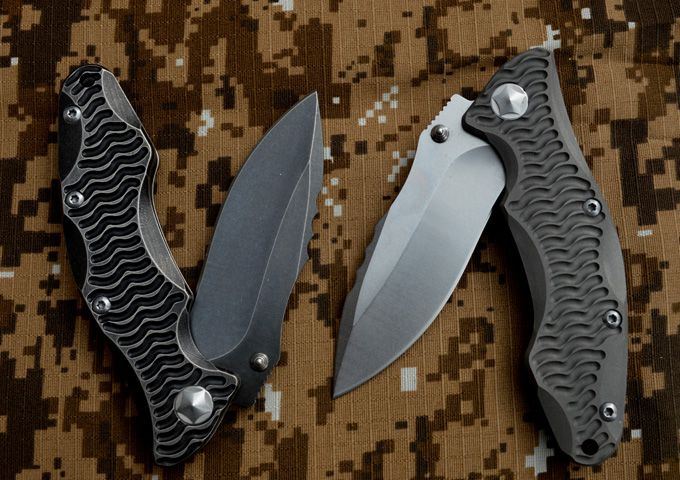 黑龙最新款钛合金折刀 钢材:D2钢 刀柄材料:钛合金 全长:230mm 刃长:98mm 刃厚:4.2mm 刃宽:33mm(最宽位) 硬度:60HRC 净重:184.7g