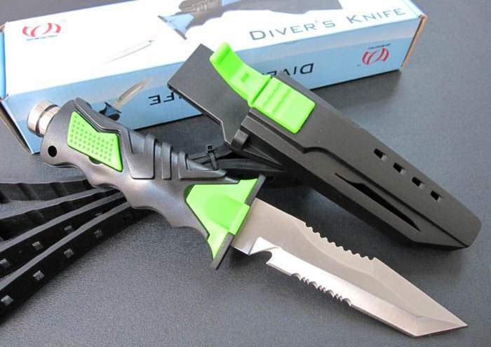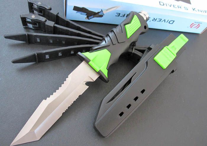 军用潜水刀(绿色T头双齿)