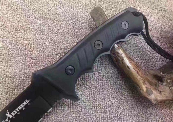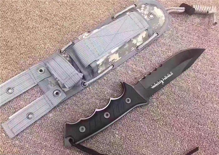 全 长:30cm 刃 长:15cm 柄 长:14cm 刃 厚:5.5mm 刃 材:5CR13 硬 度:57HRC 净 重:410g 总 重:700g(包括纸盒和刀鞘) 柄 材:工和橡胶 表 面:发黑钛 刀 鞘:CORDURA(科杜拉)