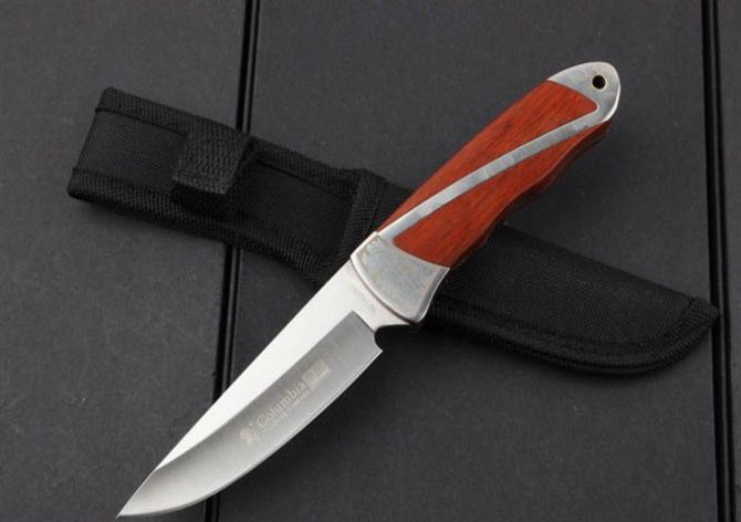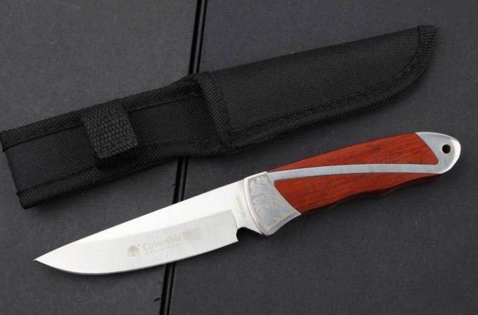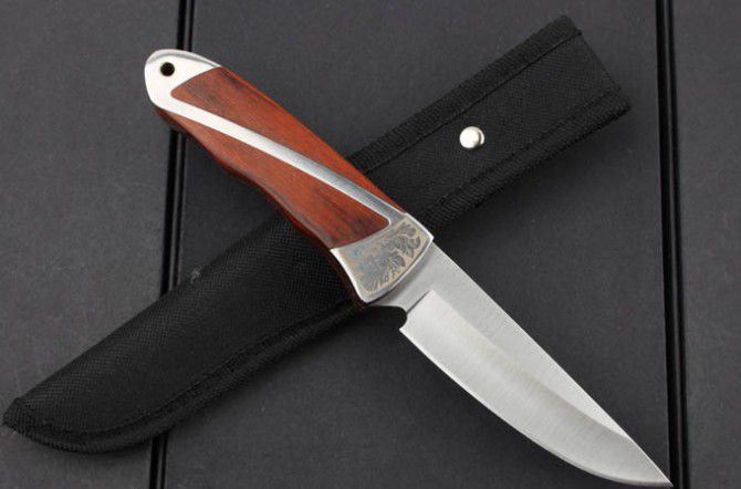 野人K308C直刀 全 长:210mm 刃 长:103mm 柄 长:108mm 刃 宽:27mm 刃 厚:3.0mm 刃 材:3Cr13Mov 重 量:156g(含包装) 硬 度:55HRC 表 面:砂光 柄 材:彩木+钢片 锁 型:定锁 其 他:尼龙套