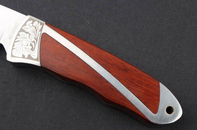 全 长:210mm 刃 长:103mm 柄 长:108mm 刃 宽:27mm 刃 厚:3.0mm 刃 材:3Cr13Mov 重 量:156g(含包装) 硬 度:55HRC 表 面:砂光 柄 材:彩木+钢片 锁 型:定锁 其 他:尼龙套