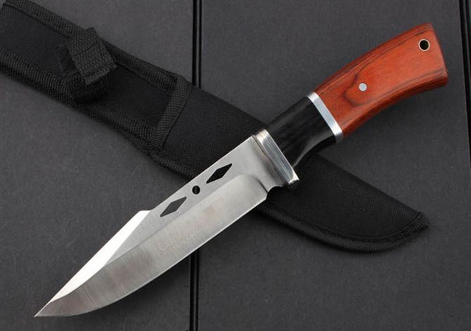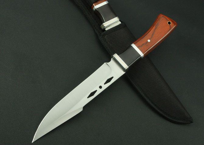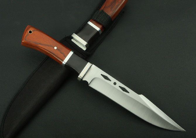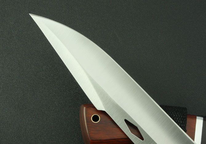 K310B直刀(中号) 全 长:263mm 刃 长:143mm 柄 长:120mm 刃 宽:32m 刃 厚:3.2mm 刃 材:3Cr13Wov 重 量:195g(含包装) 硬 度:55HRC 表 面:砂光 柄 材:黑 红 彩木+钢头 锁 型:定锁 其 他:配尼龙套