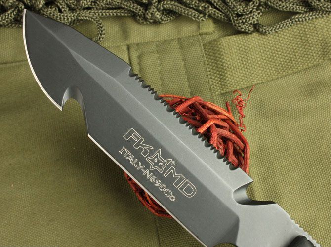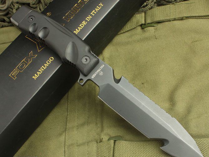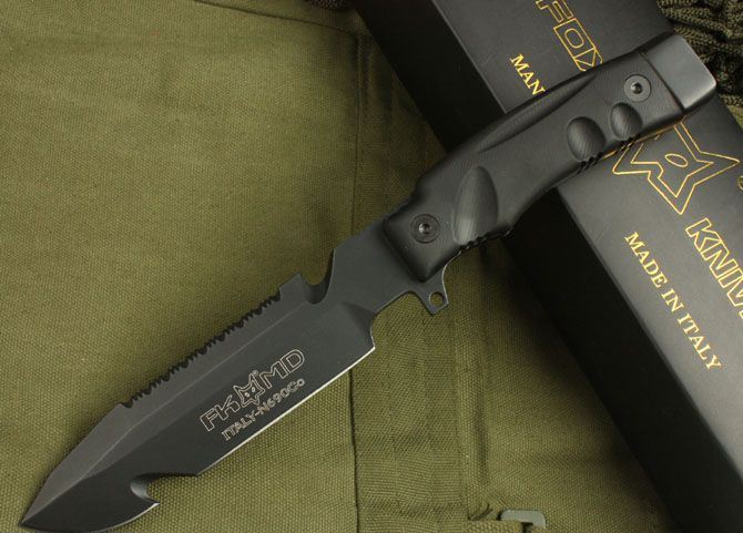 狐狸-潜水刀 全长:28cm 刃长:15.5cm 柄长:12.5cm 刃厚:6.2mm 刃宽:3.5cm 刃材:5Cr13 柄材:进口玻纤亚麻高压复合材料(使刀更完美) 硬度:57HRC 净重:480克 毛重:790克 表面处理:氧化黑 结构:龙骨结构,刀身贯穿刀柄,非常牢固