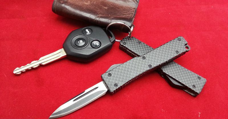 Mini直跳刀(碳纤维)航空铝柄 展开:13CM 收起:8CM 柄材:氧化航空T6铝 刀刃:440 重量:30克 Mini 款直跳刀,航空T6铝材柄,超小巧便携的直跳刀,尾端钥匙圈穿孔,可玩性强,碳纤维迷彩