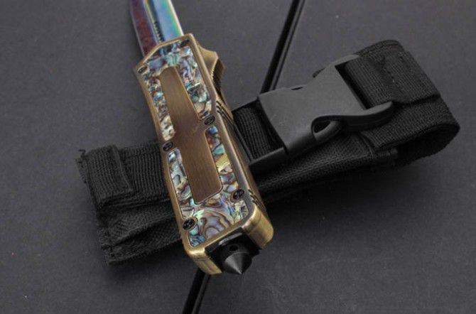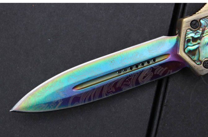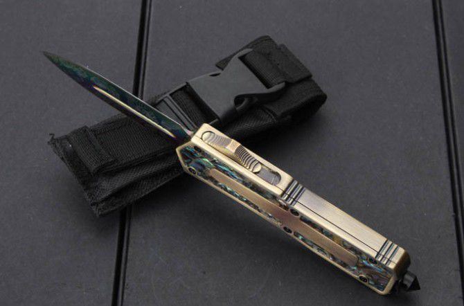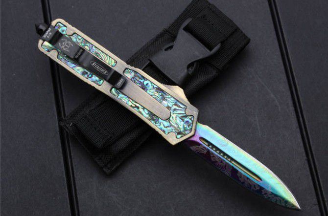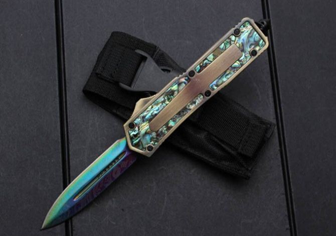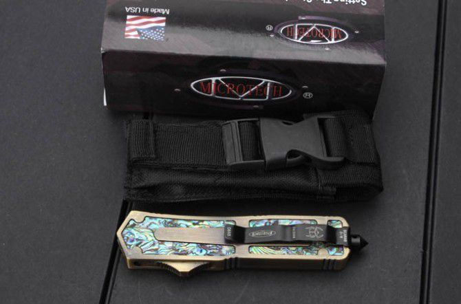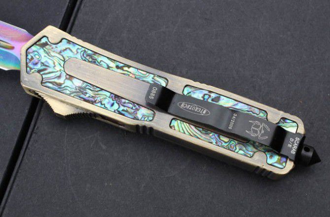 微技术圣甲虫.鲍贝金双刃直出刀(镀钛版);名贵鲍鱼壳珍藏版,专为喜欢收藏的刀友设计,天然年长鲍鱼壳精磨出色彩绚丽的纹理,极具观赏价值。国内专业直跳厂家出品,质量可以国外正品蓖美的了!