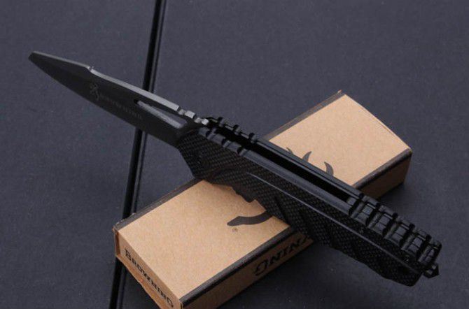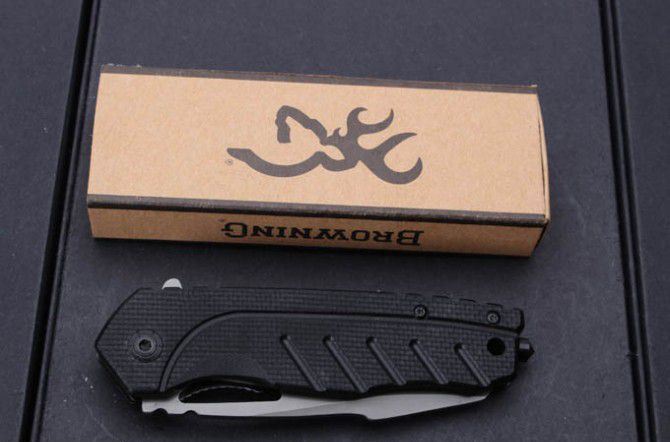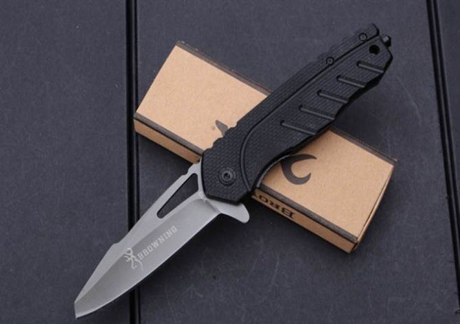 勃朗宁X39求生折刀(黑) 全 长:195mm 刃 长:80mm 柄 长:115mm 刃 宽:12mm 刃 厚:2.3mm 刃 材:3Cr13Mov 重 量:60g(含包装) 硬 度:55HRC 表 面:灰钛 柄 材:钢柄 锁 型:线锁 其 他:配彩盒