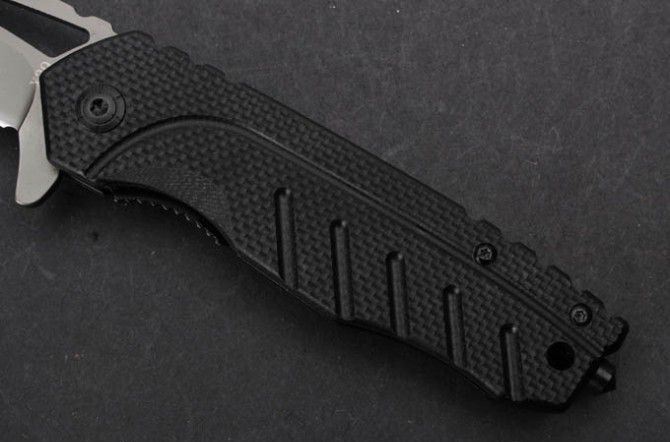 全 长:195mm 刃 长:80mm 柄 长:115mm 刃 宽:12mm 刃 厚:2.3mm 刃 材:3Cr13Mov 重 量:60g(含包装) 硬 度:55HRC 表 面:灰钛 柄 材:钢柄 锁 型:线锁 其 他:配彩盒