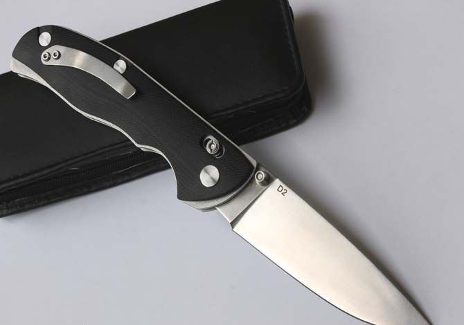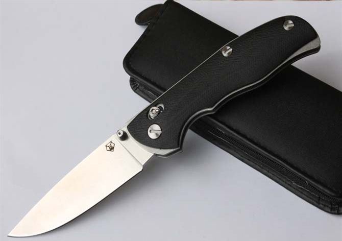 俄罗斯熊头传统折刀(轴锁)黑色G10柄 全 长:220mm 刃 长:95mm 柄 长:130mm 刃 宽:27mm 刃 厚:4mm 刃 材:高速D2钢 重 量:175g(含包装) 硬 度:60-61HRC 表 面:砂光缎面打磨 柄 材:G10黑色 锁 型:轴锁 其 他:配高档PS套