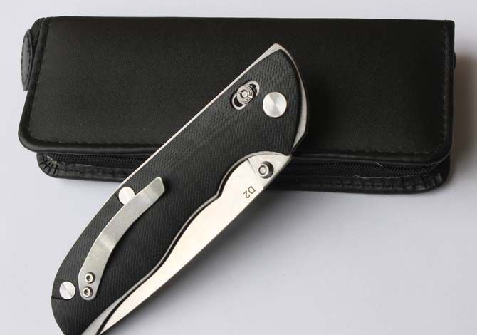 全 长:220mm 刃 长:95mm 柄 长:130mm 刃 宽:27mm 刃 厚:4mm 刃 材:高速D2钢 重 量:175g(含包装) 硬 度:60-61HRC 表 面:砂光缎面打磨 柄 材:G10黑色 锁 型:轴锁 其 他:配高档PS套
