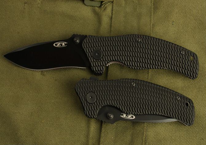 ZT铁甲战刀 全 长: 19.7cm 刃 长: 8.5cm 刃 宽: 3cm(最宽处) 闭 合: 11.6cm (柄长) 刃 材: 440 硬 度: 57 表 面: 发黑 刃 厚: 0.3cm 柄 厚: 1.25cm 柄 材: 航空铝材 重 量: 150克 锁 闭: 线锁