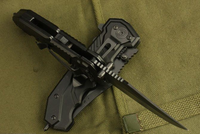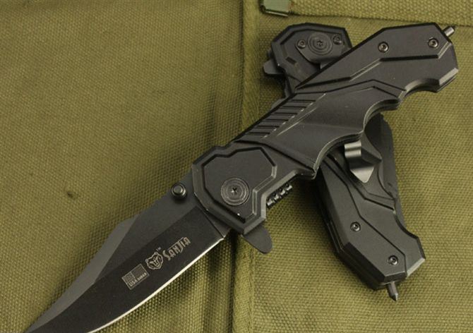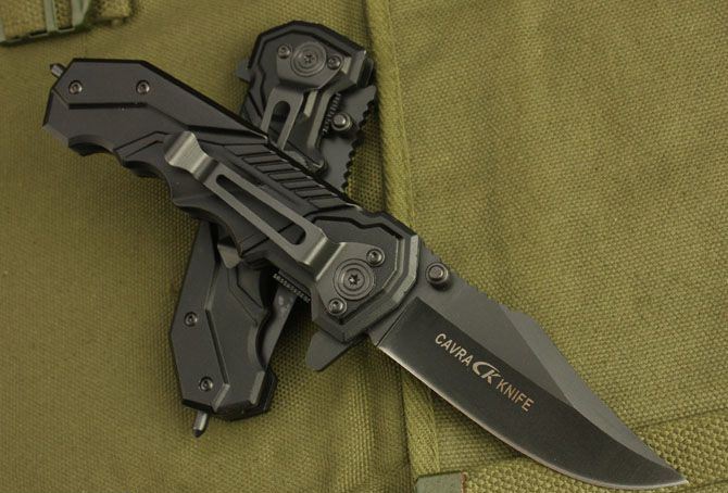 全长:19.5 刃长:7.5 刃宽:2.7m 闭合:11.5 刃厚:0.3m 钢材:440C 硬度:56HRC 净重:150 表面:氧化黑 柄材:金属铝 锁型:快开 包装:彩纸盒