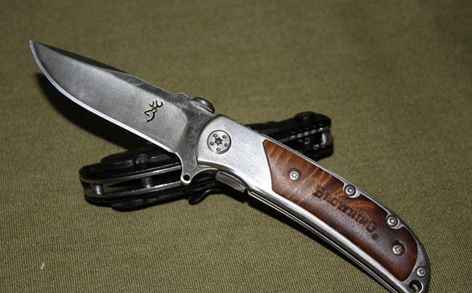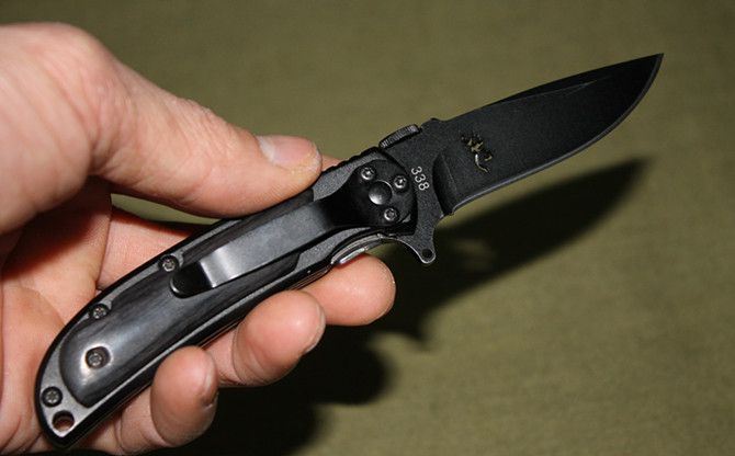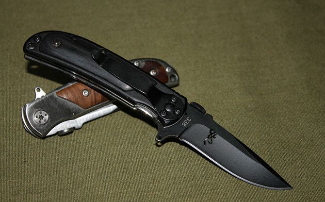 勃朗宁小号338(黑色) 全 长:16cm 刃 长:7cm 柄 长:9cm 刃 厚:0.23cm 刃 材:3Cr13 柄 材:白影木 硬 度:55HRC 表 面:砂光 重 量:108g 锁 定: 侧锁