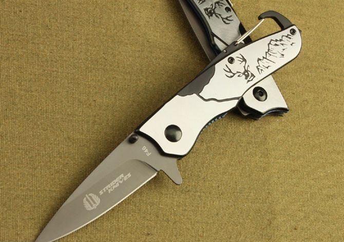 挺进者F46折刀 全长:16.3cm 刃长:6.8cm 柄长:9.7cm 刃厚:1.6mm 刃材: 3Cr13 柄材: 钢片 硬度: 55HRC 重量:100克 表面处理:灰钛 锁型:快开