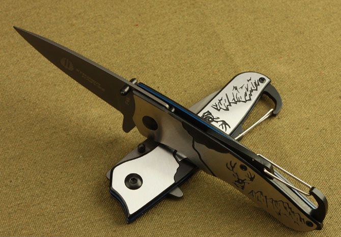 全长:16.3cm 刃长:6.8cm 柄长:9.7cm 刃厚:1.6mm 刃材: 3Cr13 柄材: 钢片 硬度: 55HRC 重量:100克 表面处理:灰钛 锁型:快开