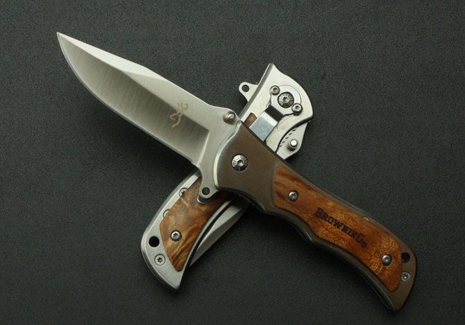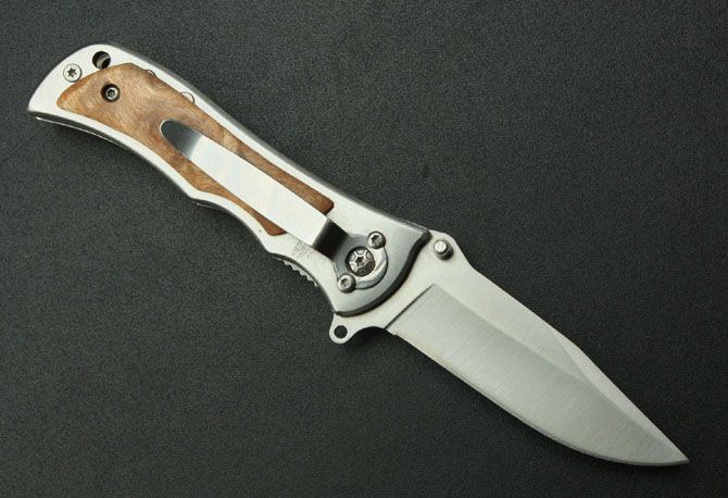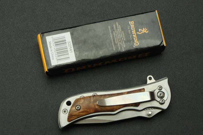 小号勃朗宁339折刀 全 长:16cm 刃 长:7cm 柄 长:9cm 刃 厚:0.22cm 刃 材:3Cr13 柄 材:白影木 硬 度:55HRC 表 面:砂光 重 量:140g 锁 定: 侧锁