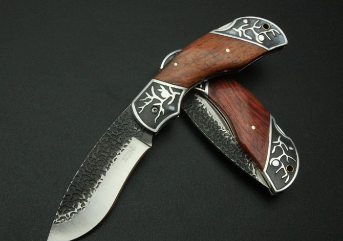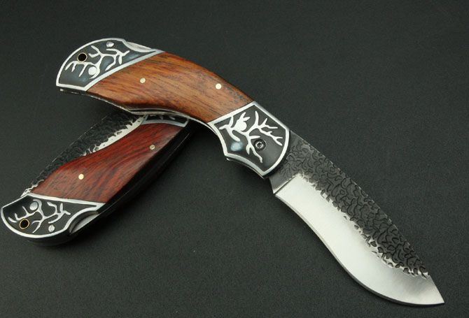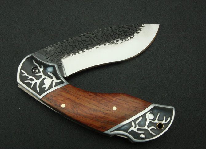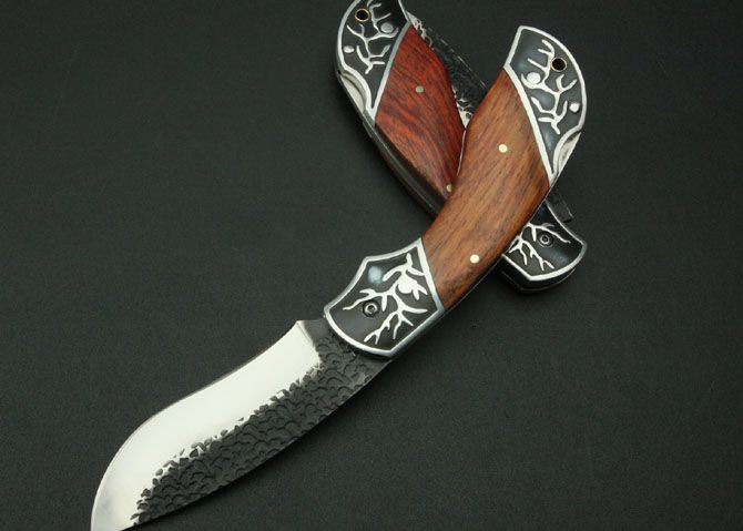 铝头折刀(配尼龙套) 刃材:5Cr13 硬度: 56HRC 全长:21.5CM 刃长:9CM 刃厚: 0.27CM 刃宽:3CM (最宽处) 柄长: 12CM 重量:170克 涂层:热扎 柄材: 铝+花梨木 锁定: 制尾