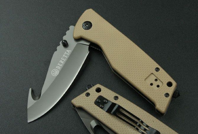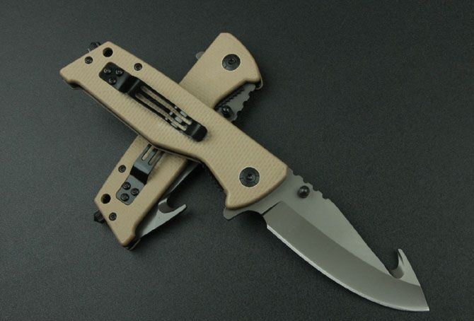 沙漠色X23折刀 全长:20cm 刃长:8.7cm 刃宽:2.7cm 刃厚:0.28cm 柄长:11cm 刃材:3Cr13Mov 硬度:55HRC 刀重:140克 总重:150克(含包装物) 柄材:G10 表面:镀钛 品质:高品质 锁型:快开
