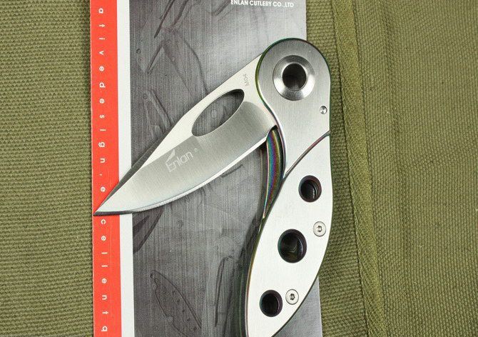 BEE-M04 全长:15.5cm 刃长:6.5cm 柄长:9.2cm 刃厚:2.7mm 刃宽: 2.3cm 刃材: 8Cr13 柄材: 全钢 硬度: 57HRC 净重:95克 毛重:105克 表面处理:手工砂光 锁型:线锁