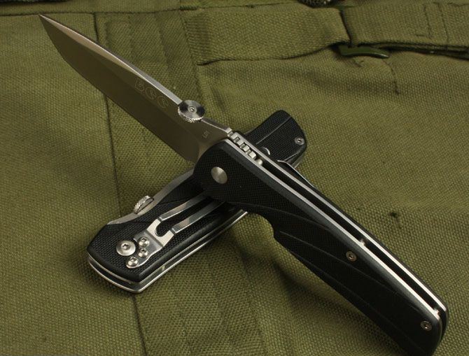 BEE-L01 全长:19.5cm 刃长:8.5cm 柄长:11cm 刃厚:2.5mm 刃宽: 2.3cm 刃材: 8Cr13 柄材: G10板 硬度: 57HRC 净重:110克 毛重:120克 表面处理:手工砂光 锁型:线锁