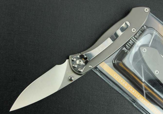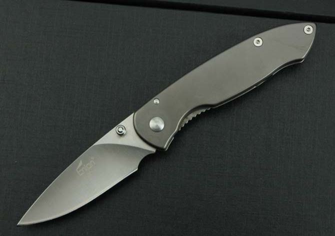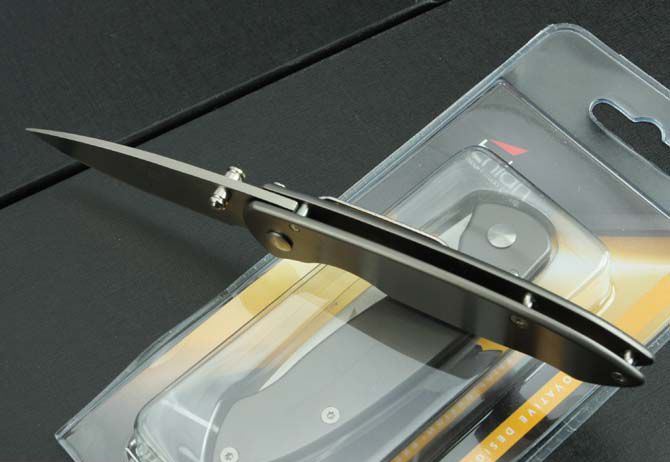 BEE—F723折刀 全长:16.2cm 刃长:6.5cm 柄长:9.5cm 刃厚:2.5mm 刃宽: 2.2cm 刃材: 8Cr13Mov 柄材: 钢镀钛 硬度: 57HRC 净重:80克 毛重:90克 表面处理:手工砂光 锁型:侧锁