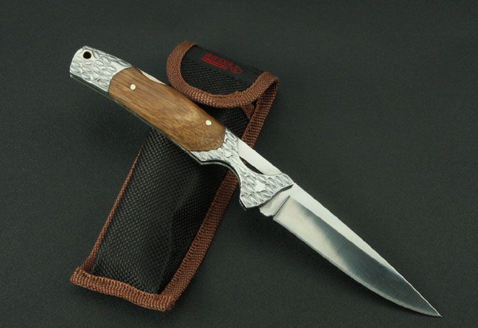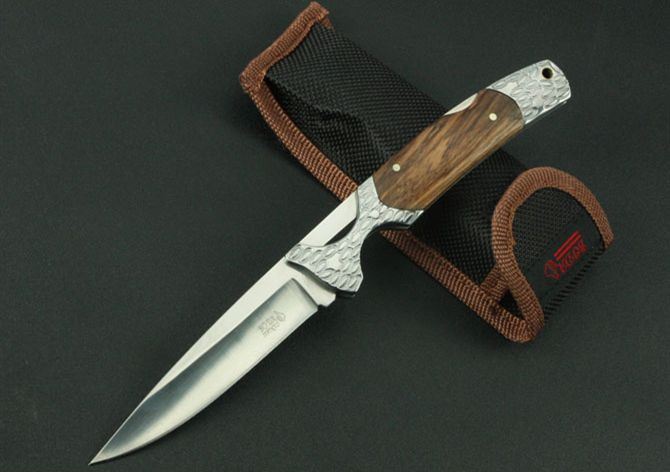 全 长:230mm 刃 长:100mm 柄 长:130mm 刃 宽:22mm 刃 厚:2.8mm 刃 材:3Cr13Wov 重 量:130g(含包装) 硬 度:56HRC 表 面:镜光 柄 材:钢头+斑马木 锁 型:传统式制尾锁 其 他:配尼龙套