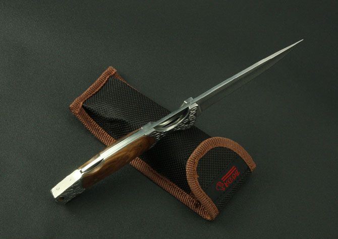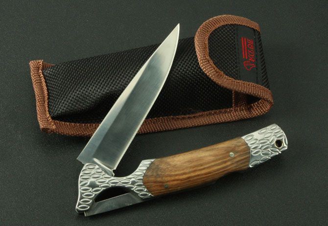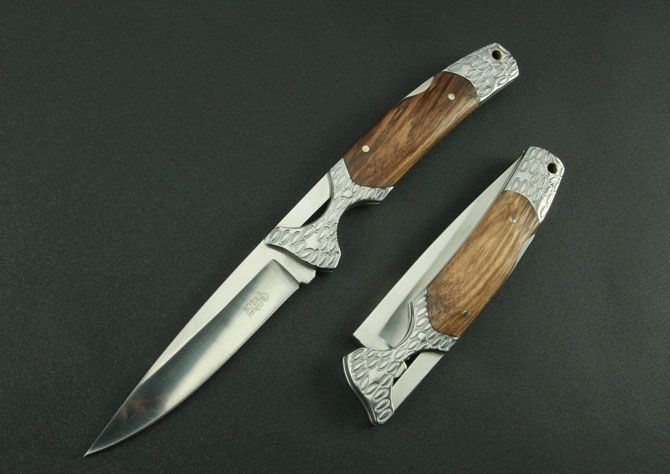 白钢小蛮腰折刀 全 长:230mm 刃 长:100mm 柄 长:130mm 刃 宽:22mm 刃 厚:2.8mm 刃 材:3Cr13Wov 重 量:130g(含包装) 硬 度:56HRC 表 面:镜光 柄 材:钢头+斑马木 锁 型:传统式制尾锁 其 他:配尼龙套