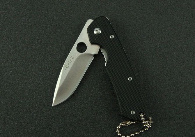 C.L.Z非常小器小折(黑色、蓝色) 全 长:125mm 刃 长:45mm 柄 长:75mm 刃 宽:16mm 刃 厚:1.7mm 刃 材:5Cr13Wov 重 量:40g(含包装) 硬 度:57HRC 表 面:砂光 柄 材:黑色和蓝色G10 锁 型:钱锁 其 他:配白盒