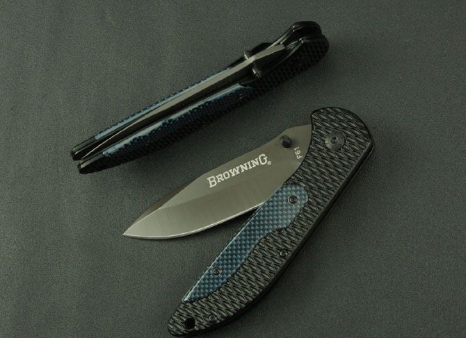勃朗宁F61战术折刀 全 长:225mm 刃 长:95mm 柄 长:130mm 刃 宽:21mm 刃 厚:2.8mm 刃 材:3Cr13Mov 重 量:155g(含包装) 硬 度:55HRC 表 面:镀钛 柄 材:铝 锁 型:线锁