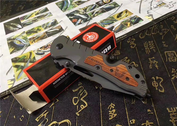 全 长:210mm 刃 长:85mm 柄 长:115mm 刃 宽:27mm 刃 厚:2.7mm 刃 材:3Cr13Mov 重 量:200g(含包装) 硬 度:55HRC 表 面:灰钛 柄 材:钢柄+木片 锁 型:线锁 其 他:配彩盒