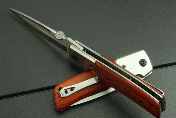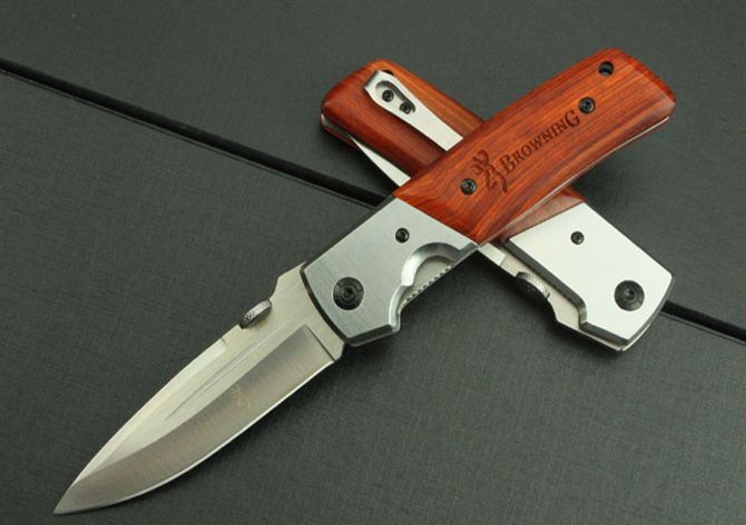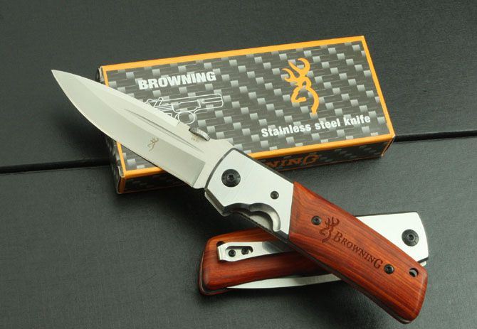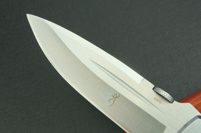 勃朗宁DA50折刀 全 长:225mm 刃 长:98mm 柄 长:123mm 刃 宽:26mm 刃 厚:3.5mm 刃 材:3Cr13 重 量:230g(含包装) 硬 度:55HRC 表 面:砂光 柄 材:钢头和酸枝木 锁 型:线锁 其 他:配彩盒