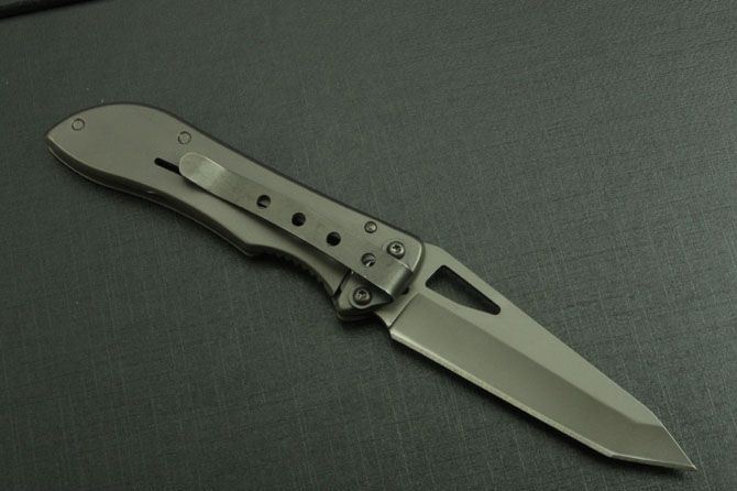 全 长:158mm 刃 长:68mm 柄 长:90mm 刃 宽:22mm 刃 厚:2.3mm 刃 材:3Cr13 重 量:72g(含包装) 硬 度:55HRC 表 面:镀钛 柄 材:全钢 锁 型:线锁 其 他:配彩色插卡