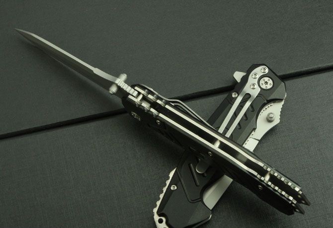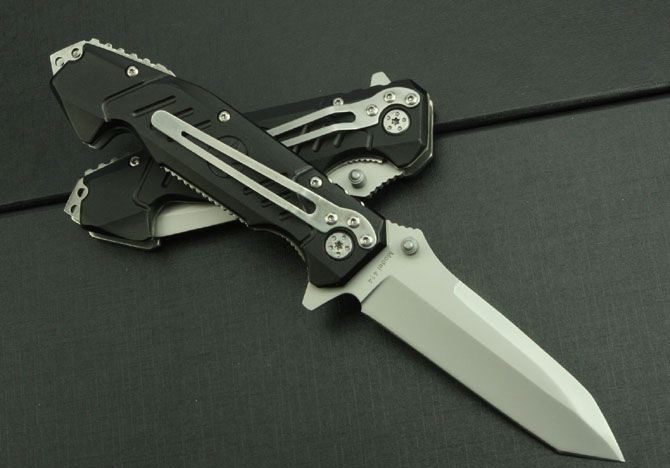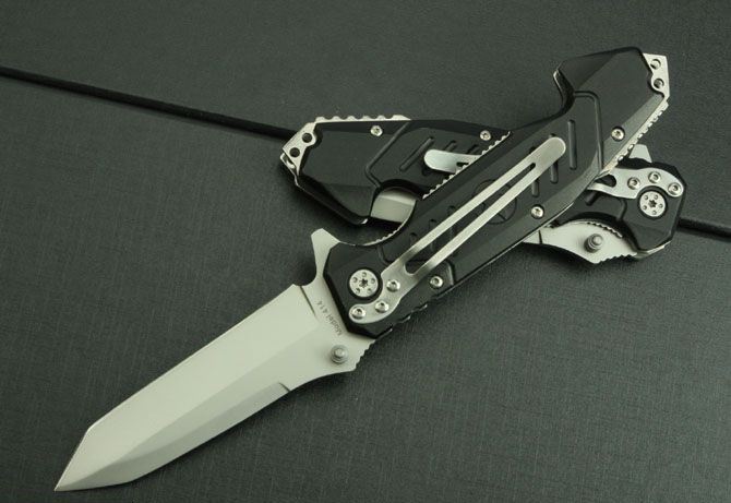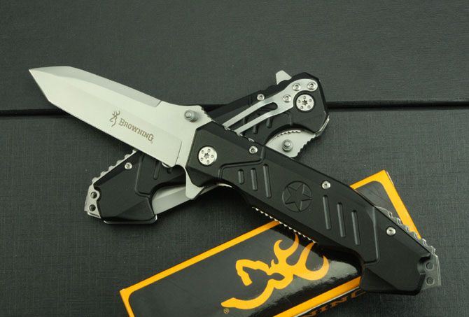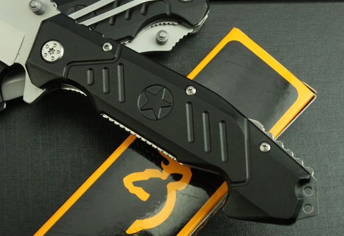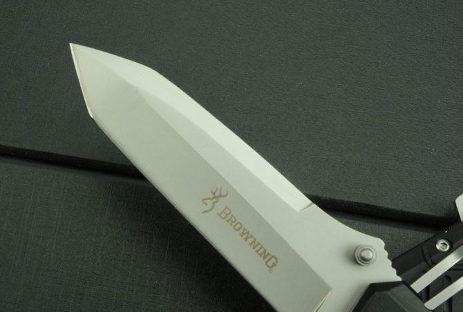 勃朗宁414折刀 全 长:210mm 刃 长:86mm 柄 长:120mm 刃 宽:26mm 刃 厚:3.3mm 刃 材:3Cr13 重 量:150g(含包装) 硬 度:55HRC 表 面:灰钛 柄 材:铝 锁 型:线锁 其 他:配彩色盒