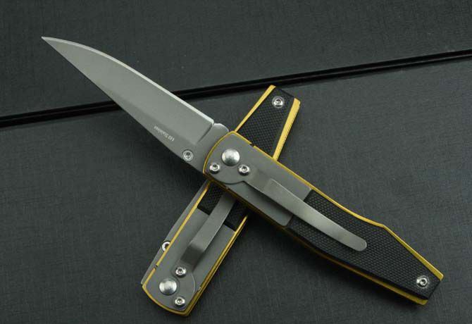 插卡T406小折刀 全 长:158mm 刃 长:62mm 柄 长:88mm 刃 宽:12mm 刃 厚:2.5mm 刃 材:3Cr13Mov 重 量:70g(含包装) 硬 度:55HRC 表 面:灰钛 柄 材:钢头+G10 锁 型:线锁 其 他:配彩色插卡
