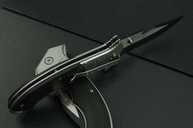 全 长:230mm 刃 长:92mm 柄 长:140mm 刃 宽:38mm 刃 厚:2.8mm 刃 材:5Cr13Mov 重 量:210g(含包装) 硬 度:57HRC 表 面:氧化黑拉砂 柄 材:钢头+黑木 锁 型:定锁 其 他:配彩盒和出世纸