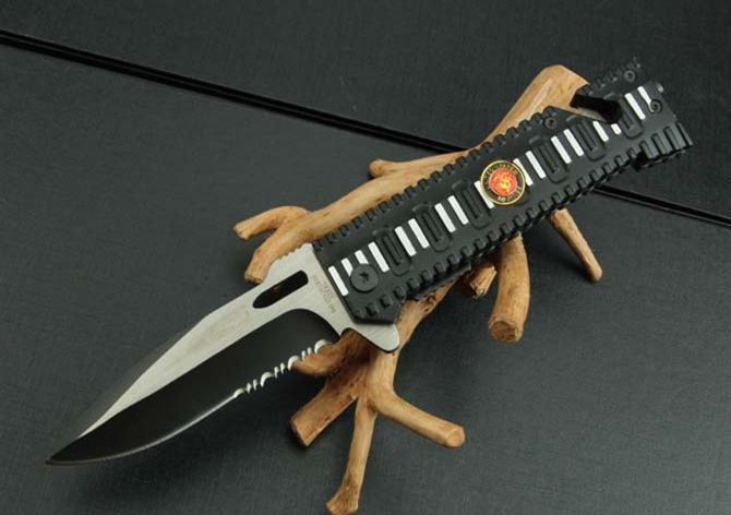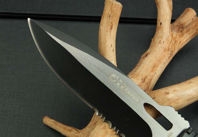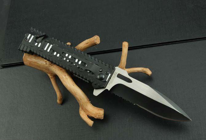 SH7735救生折刀 全 长:215mm 刃 长:88mm 柄 长:115mm 刃 宽:25mm 刃 厚:3mm 刃 材:3Cr13Mov 重 量:140g(含包装) 硬 度:55HRC 表 面:氧化黑拉砂 柄 材:铝柄 锁 型:快开 其 他:配彩盒
