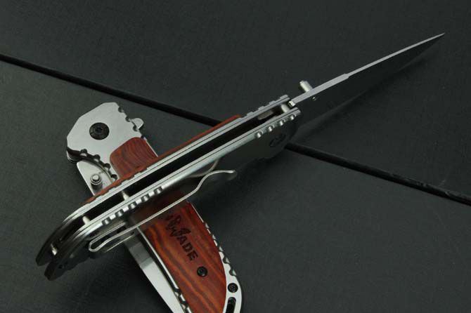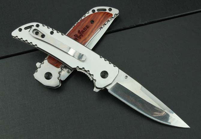 全 长:205mm 刃 长:88mm 柄 长:115mm 刃 宽:26mm 刃 厚:3mm 刃 材:3Cr13Mov 重 量:180g(含包装) 硬 度:55HRC 表 面:镜光 柄 材:红木柄 锁 型:快开 其 他:配彩盒