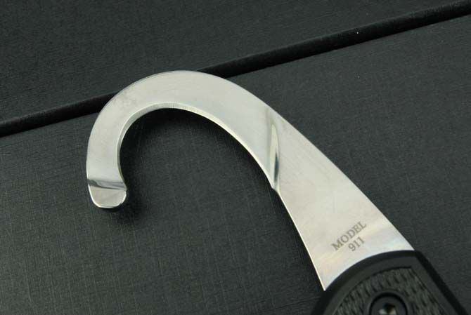 911制尾折叠求生勾 全 长:180mm 刃 长:45mm 柄 长:120mm 刃 宽:10mm 刃 厚:2.8mm 刃 材:5Cr13Mov 重 量:200g(含包装) 硬 度:57HRC 表 面:镜光 柄 材:ABS 锁 型:制尾 其 他:配尼龙套和彩盒