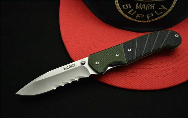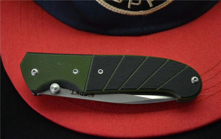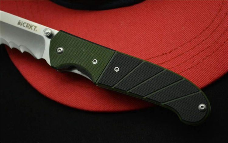 哥伦比亚CRKT6855折刀 全长:19cm 刀刃:8.5cm 刃厚:0.28cm 刃宽:2cm 柄长:10.5cm 柄厚:1.1cm 硬度:58HRC 净重:202g 材料:瑞典山特维克 柄材:双色G10板 锁型:运动辅助开锁