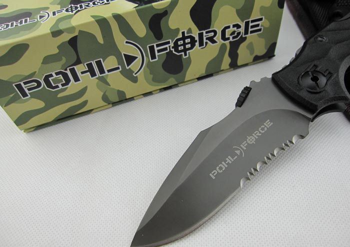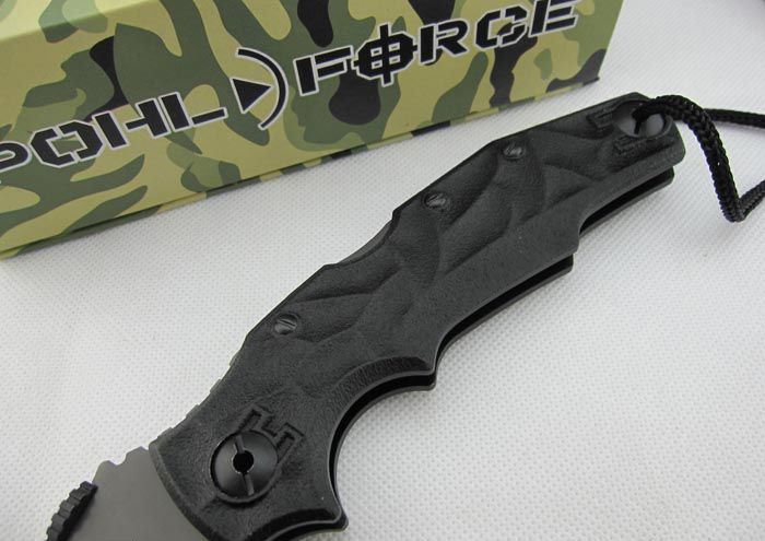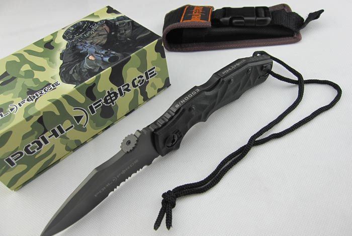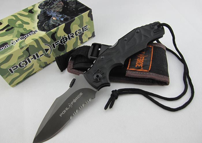 终极力量大型折刀(全刃、半齿) 全 长: 25.8cm 刃 长: 10.0cm 刃 宽: 3.5cm(最宽处) 闭 合: 14.8cm(柄长) 刃 材: 440C 高级不锈钢 硬 度: 58 HRC 表 面: 镀钛 刃 厚: 0.57cm 柄 材: 铝柄,表面防滑处理 净 重: 500.0g 包 装:原厂纸盒 锁 闭: 背锁,坚固安全而且很舒适 其 他:半齿开锋,CNC数控处理,精密度极高 品 质: 品质卓越