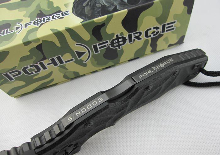 全 长: 25.8cm 刃 长: 10.0cm 刃 宽: 3.5cm(最宽处) 闭 合: 14.8cm(柄长) 刃 材: 440C 高级不锈钢 硬 度: 58 HRC 表 面: 镀钛 刃 厚: 0.57cm 柄 材: 铝柄,表面防滑处理 净 重: 500.0g 包 装:原厂纸盒 锁 闭: 背锁,坚固安全而且很舒适 其 他:半齿开锋,CNC数控处理,精密度极高 品 质: 品质卓越
