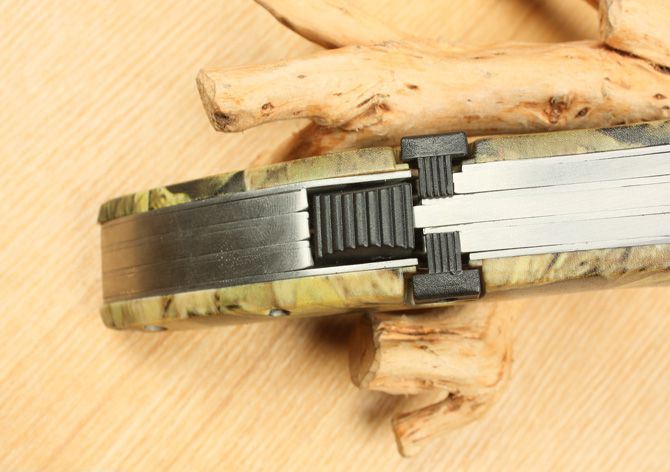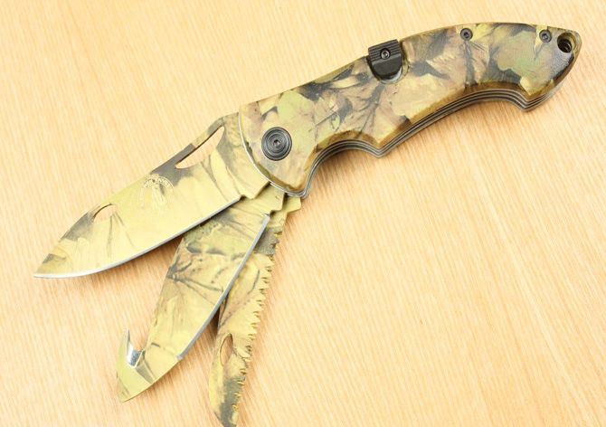 森美猎霸三刃(全迷彩) 打开长:19.5 闭合长:11.5 柄宽度:3.5 柄厚度:2.5 柄 材:航空铝,表面披覆军用迷彩。 刃厚度:0.25 刃 材:440C 刀刃硬度:56-58HRC 刀刃表面处理:披覆军用迷彩 重 量: 218g 刀背带三个独立锁。