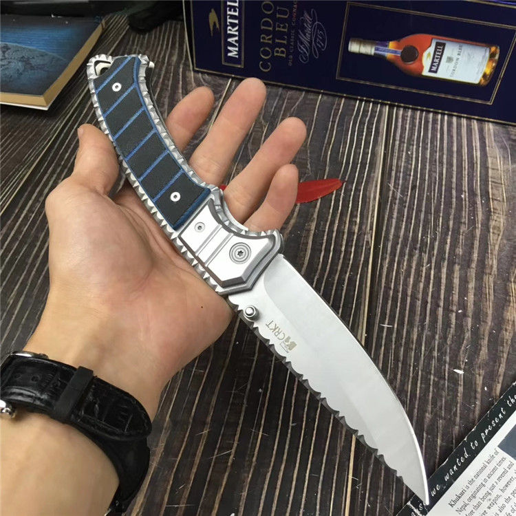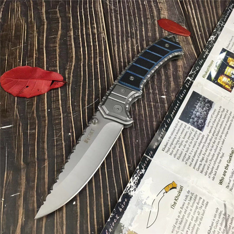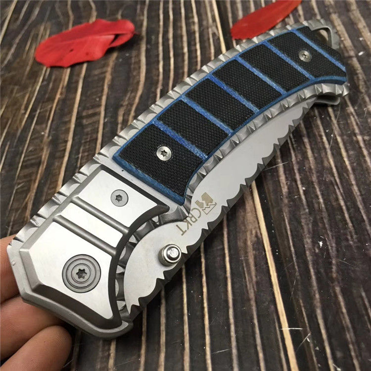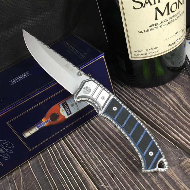 哥伦比亚雕花大折(蓝魔) 全 长: 26.5cm 刃 长: 11.3cm 刃 厚: 4mm 刃 材: 440 硬 度: 56HRC 表 面: 喷砂 柄 材: 全钢+双层彩色G10 刀 鞘: 战术耐磨尼龙袋 锁 闭: 坚固线锁 重 量: 380克